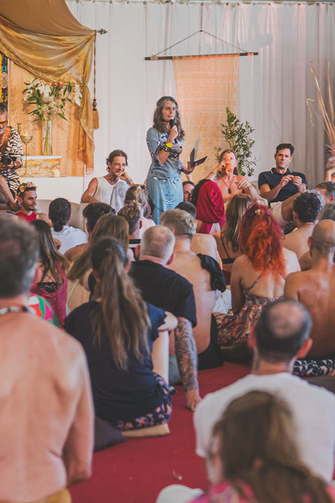 Start each day with yoga and meditation, flow into ecstatic dance, relax with sound healing, and gather for powerful, heart-opening ceremonies.